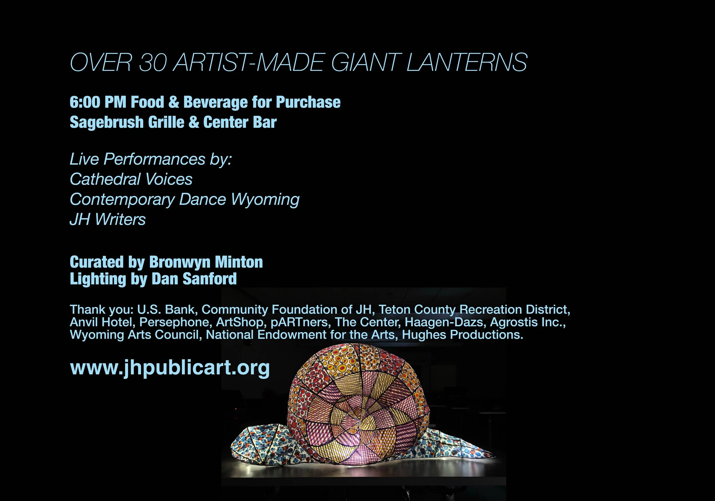 Presented by Jackson Hole Public Art, curated by Bronwyn Minton, lighting by Dan Sanford