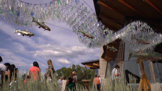 Led by Bland Hoke, students in Jackson Hole High School’s Fabrication Lab installed two public art projects at the Craig Thomas Discovery Center in Grand Teton National Park. The overarching goal of their installations was to improve the park’s waste diversion rate and facilitate easier collection, while communicating to a diverse audience that recycling can be fun. Over 100,000 visitors saw the temporary artworks titled “Stream” and “Mountain Recycling Bin” on display through July, 2017. “Stream” is currently installed at Jackson Hole High School.